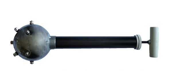 Прибор состоит из полого шара с отверстиями, непрозрачного цилиндра и поршня со штоком и ручкой. Шар соединяется с цилиндром посредством резьбы и может быть легко отделен от него. Позволяет продемонстрировать равномерную передачу давления, производимого на жидкость или газ в закрытом сосуде, и подъем жидкости за поршнем под влиянием атмосферного давления.