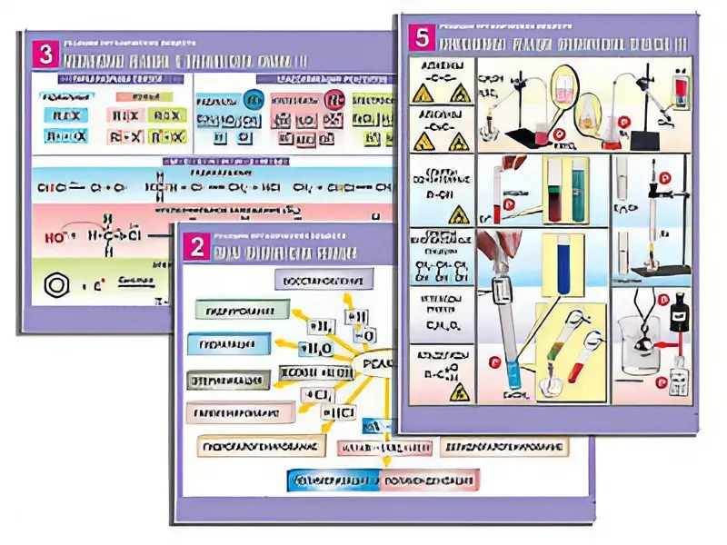 Комплект охватывает следующие темы: "Типы органических реакций", "Виды органических реакций", "Механизмы реакций в органической химии", "Качественные реакции органических веществ".