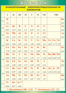 Главная Каталог Демонстрационные учебно-наглядные пособия Кабинет химии Таблица "Относительные электроотрицательности элементов" (100х140 сантиметров, винил)