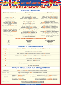 Таблица "Грамматика английского языка. Имя прилагательное" (100х140 сантиметров, винил) - fgospostavki.ru - Балашиха