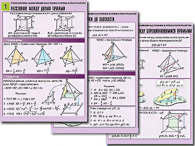 Комплект таблиц по геометрии "Стереометрия. Вычисление расстояний и углов в пространстве" (8 таблиц, А1, ламинированные) - fgospostavki.ru - Балашиха