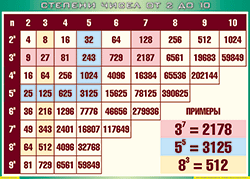 Таблица "Степени чисел от 2 до 10" (100х140 сантиметров, винил)