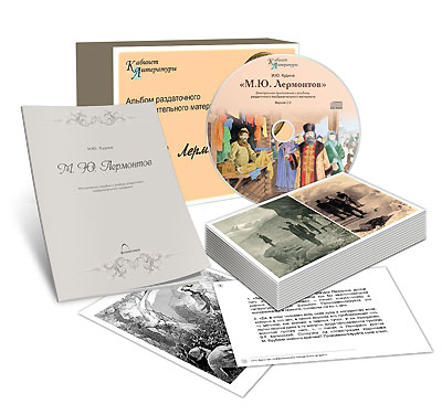 CD-диск пособия включает в себя текстовый и изобразительный материал, посвященный творчеству М.Ю. Лермонтова: живописные произведения М.Ю. Лермонтова, иллюстрации к его произведениям «Песня про царя Ивана Васильевича, молодого опричника и удалого купца Калашникова», «Мцыри», «Герой нашего времени», стихотворениям «На севере диком стоит одиноко...», «Пророк», «Выхожу один я на дорогу...», автографы рукописей, портреты М.Ю. Лермонтова и его окружения, комментарии к иллюстративному ряду; вопросы и задания.