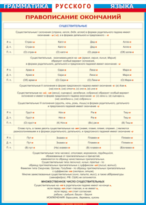 Таблица "Грамматика русского языка. Правописание окончаний имен существительных" (100х140 сантиметров, винил)