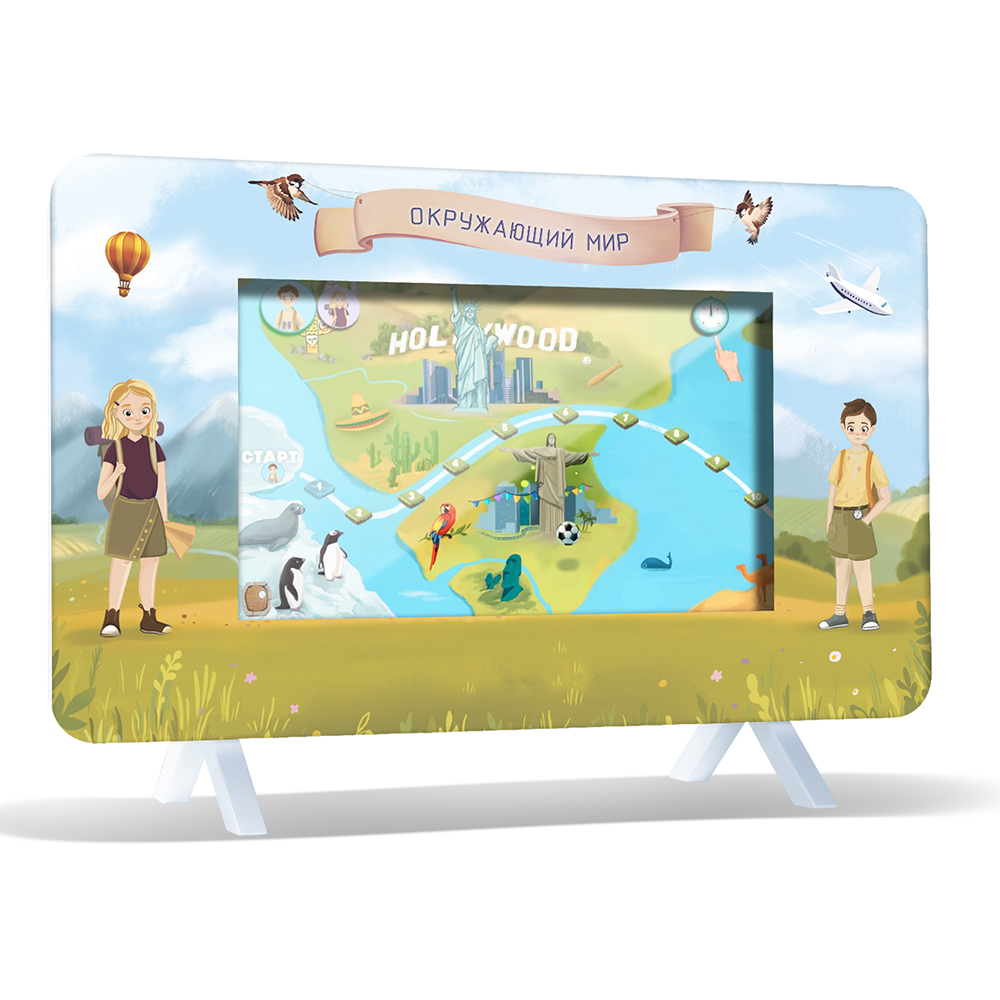 На художественно оформленной игровой сенсорной панели, помимо программного обеспечения «География», установлено «Дошкольное образование», включающее более 80 обучающих игр и 110 тестов, направленных на развитие памяти, внимания, логики, на изучение счета и английского языка. Прохождение всех игр гарантирует появление у ребенка базового представления об окружающем его мире.