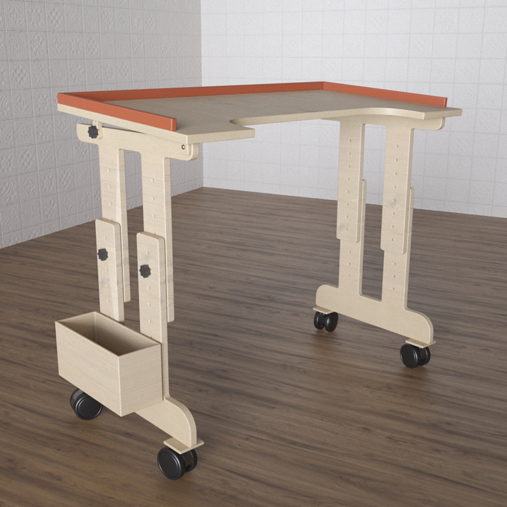 Детский стол «Доступная среда» №1 – это предмет мебели первоочередной необходимости для обустройства школ и центров с инклюзивной формой обучения; нужен для занятий с детьми, имеющими заболевания в области опорно-двигательного аппарата. Конструкция стола была разработана с учётом всех особенностей и нюансов потребностей детей с ОВЗ. Стол можно отрегулировать до нужной высоты, а столешница оснащена бесступенчатой регулировкой угла наклона; есть место для хранения письменных принадлежностей или вещей учащегося. Станет отличным дополнением к вертикальной стойке для детей с ОВЗ. Предназначен для оборудования кабинетов специалистов, занимающихся реабилитацией детей с ОВЗ, учебных помещений в центрах коррекции и реабилитации, классов в школах с инклюзивной формой обучения.
