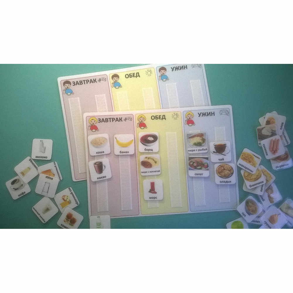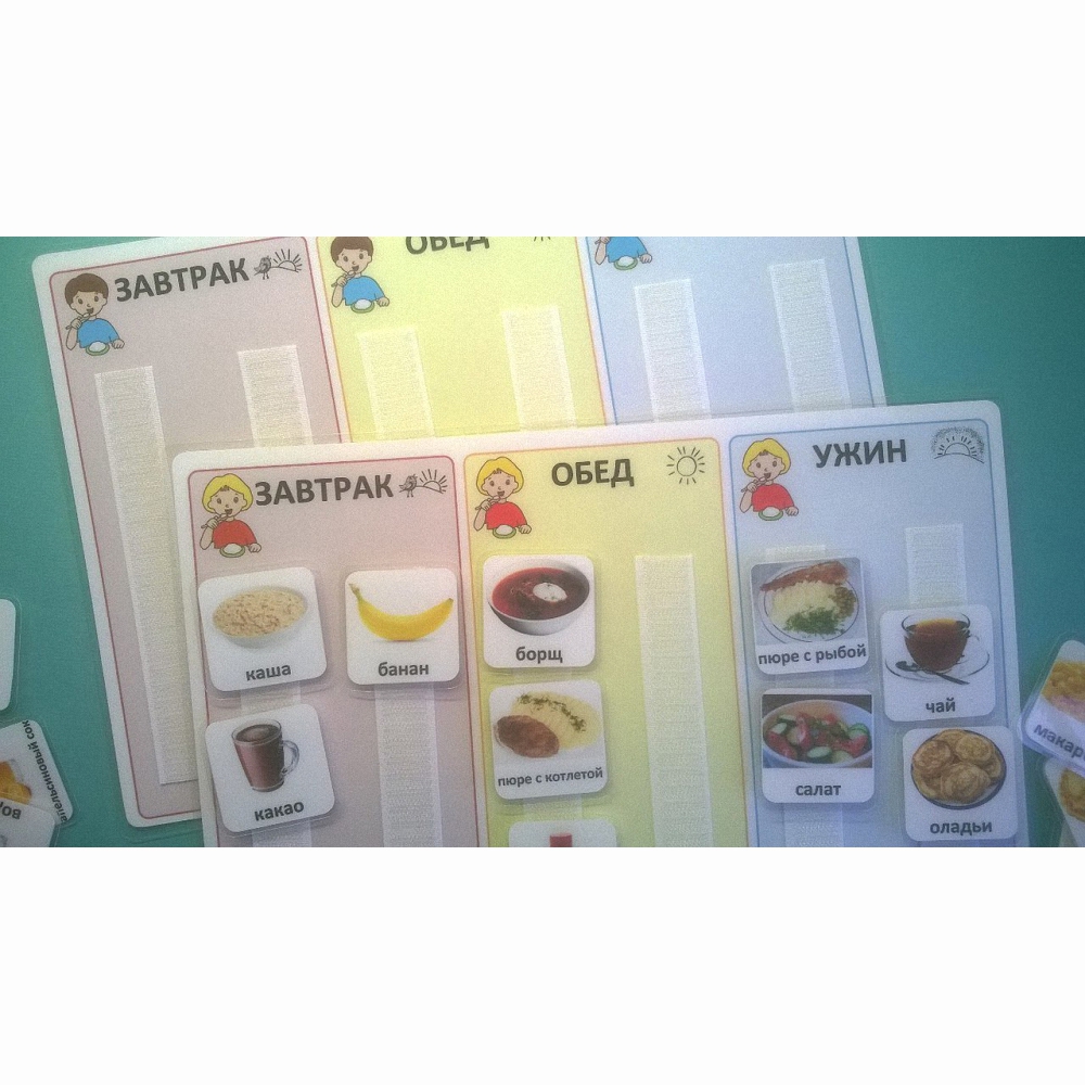 В визуальное расписание "Меню" входит ламинированный лист А4 с липучками.