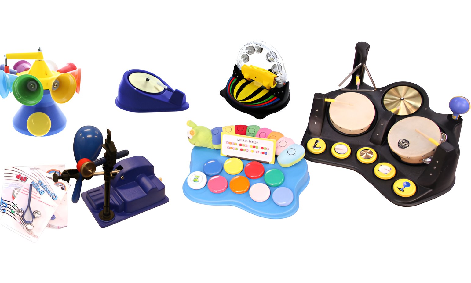 Специально для этих целей был разработан большой комплект терапевтических музыкальных игрушек. Данный набор поможет детям снимать напряжение, выражать чувства и тренировать память.