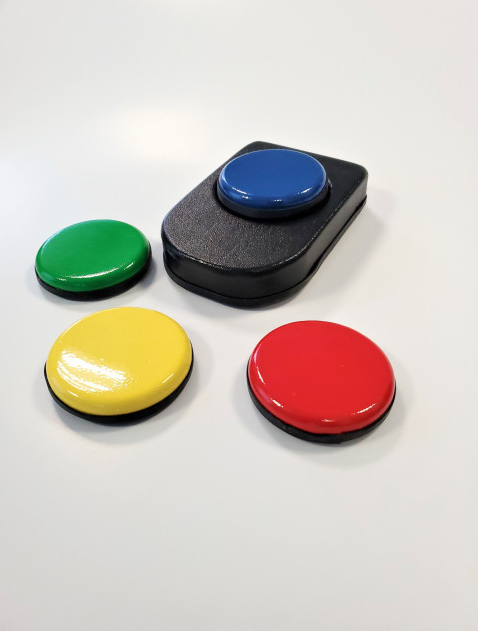 Кнопка-игровой коммуникатор предназначена для улучшения качества общения и коммуникации детей, имеющих проблемы со слуховым, зрительным, тактильным восприятием. Представляет собой компактный корпус с большой кнопкой, предназначенной для записи и воспроизведения сообщений.  Диаметр кнопки позволяет использовать представленное устройство незрячим людям, также хорошо подойдёт для тех, кто имеет нарушения опорно-двигательного аппарата и нуждаются в большой целевой площади. Устройство изготовлено из высококачественного ударопрочного пластика, имеет обтекаемые плавные формы без острых краёв и углов.