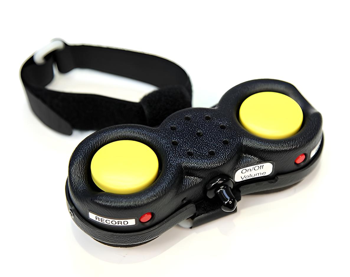 Данный портативный коммуникатор является универсальным — его можно носить как на запястье (предплечье или ноге), так и закрепить на коляске.