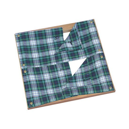 Рамка позволяет ребенку приобрести навык обращения с крючками и петлями. Работа с этой рамкой способствует укреплению пальцев рук, развитию зрительно-моторной координации.