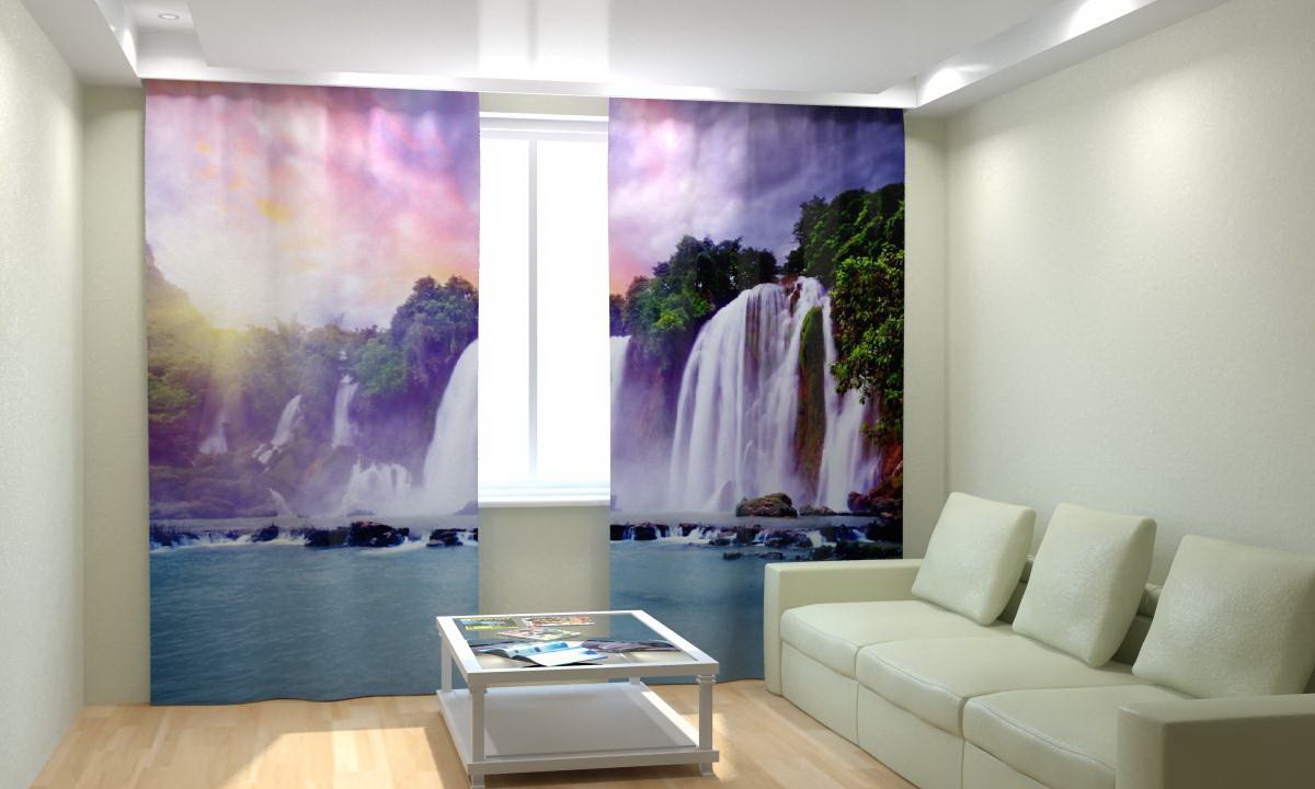 Комплект светонепроницаемых штор "Закат у водопада" - fgospostavki.ru - Балашиха