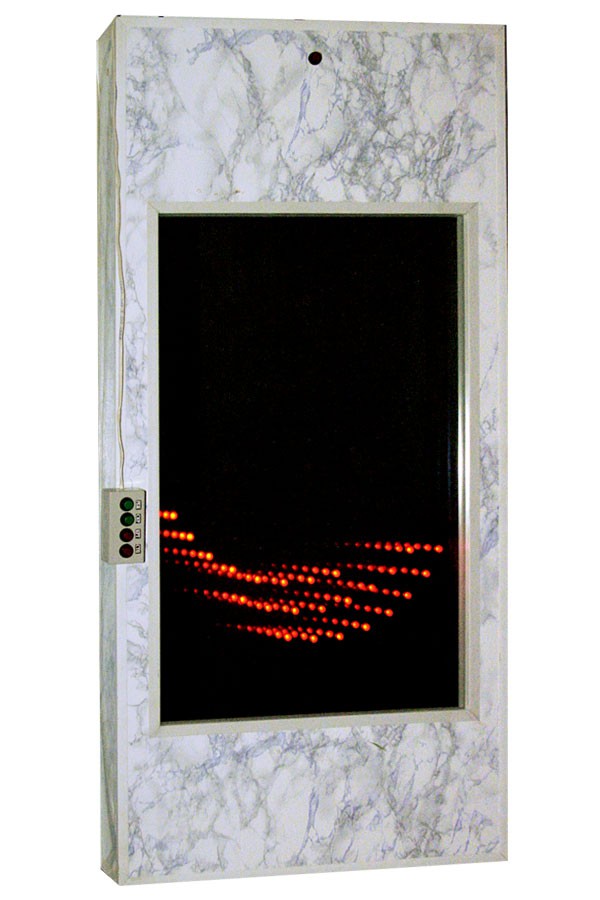 Имитация бесконечности на светодиодах. Выносной пульт управления; многообразие режимов. Возможность поймать движение цветных листиков, остановить и дать им падать дальше. Панель содержит тактильные режимы управления (от кнопок пульта) и акустические (в этих режимах панель воспринимает внешние звуки, издаваемые человеком: хлопок в ладоши, топание ногой, крик и т.п. и реагирует на эти звуки.