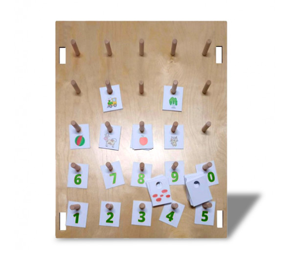 Тактильно-развивающая панель  для развития памяти - это увлекательная игра, выполненная из качественных материалов, не оставляет зацепок в детских ручках. Это большое прямоугольное поле, на котором расположены палочки, на одинаковом расстоянии. В набор входят карточки с разными изображениями предметов, цифр и фруктов. Каждая карточка имеет дырку наверху, поэтому их с легкостью можно вешать на деревяшки. Игра поможет расслабиться ребенку и переключиться с активных игр. Панель заинтересует как маленьких детей, так и постарше, а родителям поможет сохранить дом в целости и сохранности. Она подойдет для домашнего использования и для специальных учреждений.