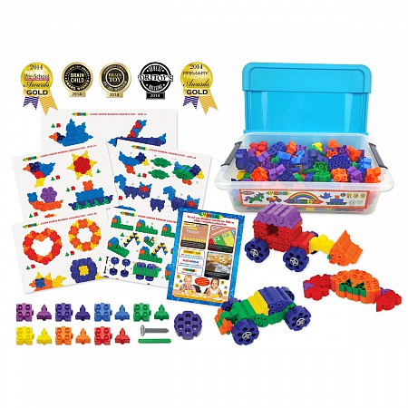 Конструктор упакован в ударопрочный пластиковый короб с крышкой и удобной ручкой для переноски и хранения деталей.