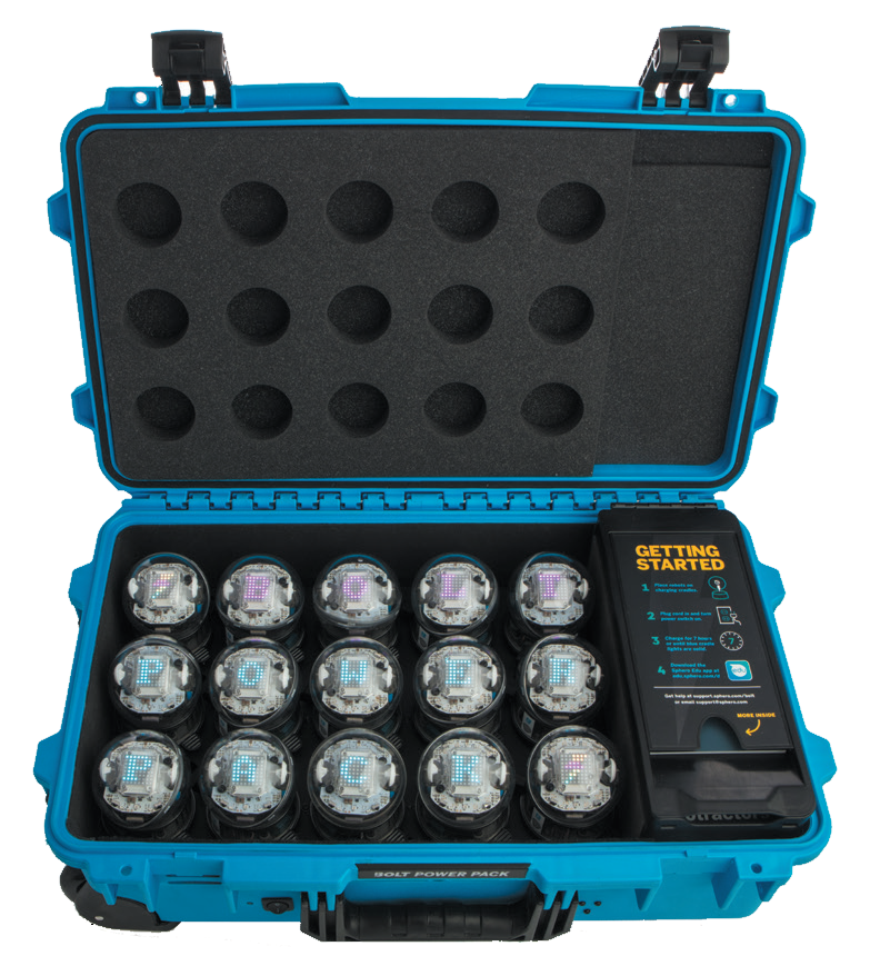 Данный набор представляет из себя переносной чемодан, внутри которого 15 устройств Sphero и аксессуары для организации учебного процесса в любом месте. Чемодан позволяет заряжать устройства Sphero.