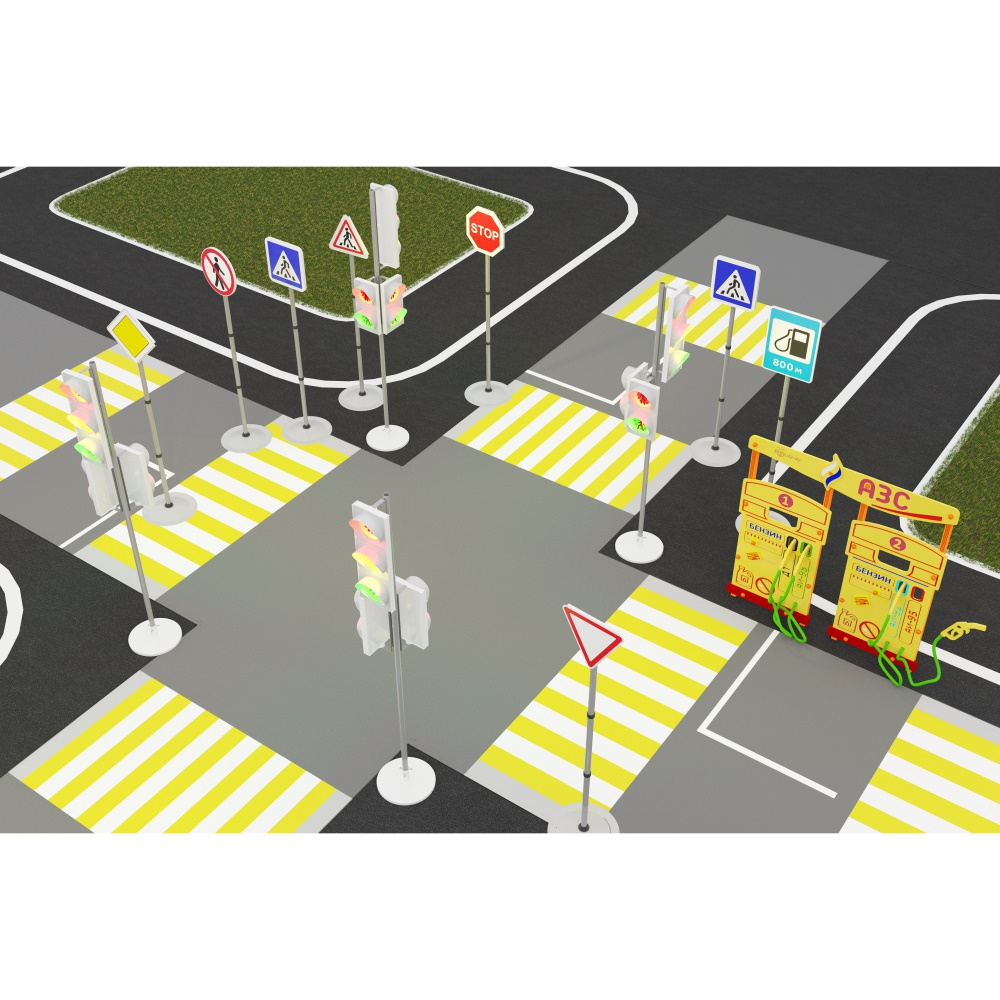 Создайте уникальный автогородок с комплектом "Большой"! В него входит множество дорожных знаков, светодиодные светофоры, учебно-игровой макет, 8 ролевых жилетов и многое другое! К автогородку также можно приобрести дополнительные элементы.
