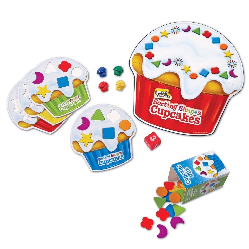 4 карты с кексами головоломками, 30 карточек с разноцветными и разными по форме украшениями для кекса, 4 кексика-фишки для игроков, 1 игральный кубик.