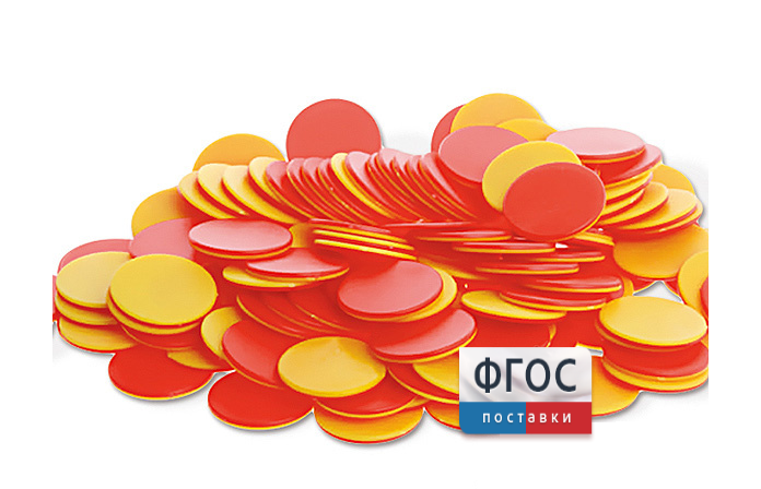 2-х цветные пластиковые фишки, диаметром 25мм. Цвет: красный и жёлтый. В наборе 200 шт. Набор можно использовать как счетный, сортировочный и игровой материал. Набор упакован в полиэтиленовый пакет.