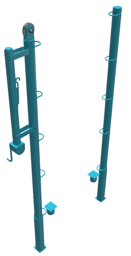 Стойки для большого тенниса предназначены для игры в большой теннис в спортивных залах. Стойки устанавливаются в закладные стаканы и вынимаются из них при необходимости освобождения площадки.