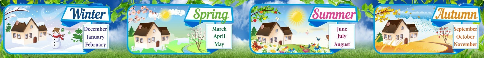 Стенд "Времена года, месяцы, тематический стенд на английском языке"