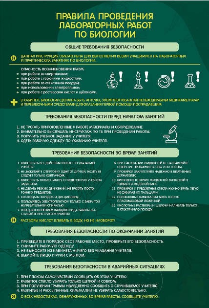 Стенд "Правила выполнения лабораторных работ по биологии" Вариант 1