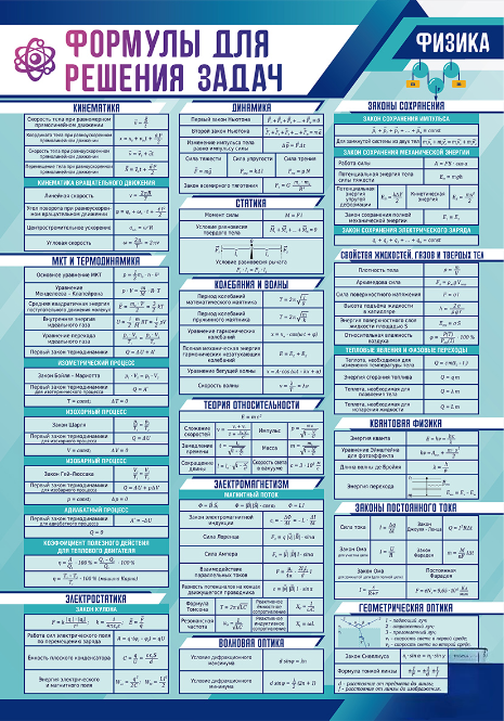 Главная Каталог Стенды Кабинеты Физика Стенд "Формулы для решения задач по физике" Вариант 1