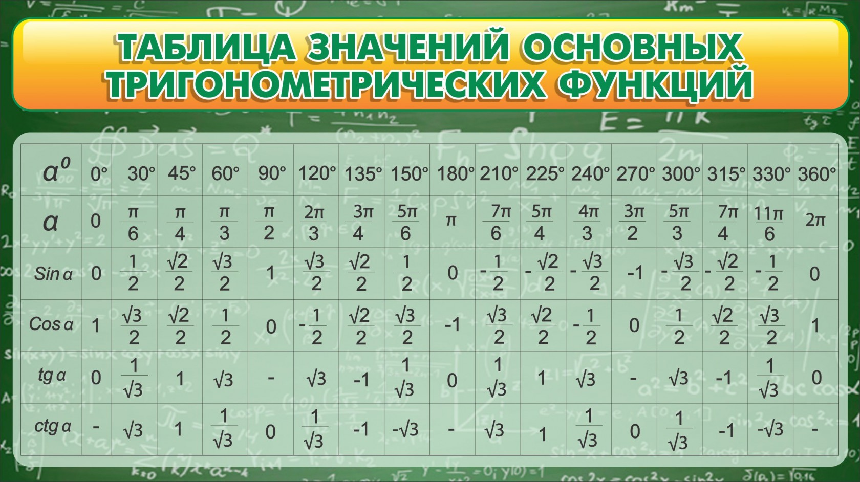 Главная Каталог Стенды Кабинеты Математика Стенд "Таблица значений основных тригонометрических функций" Вариант 2