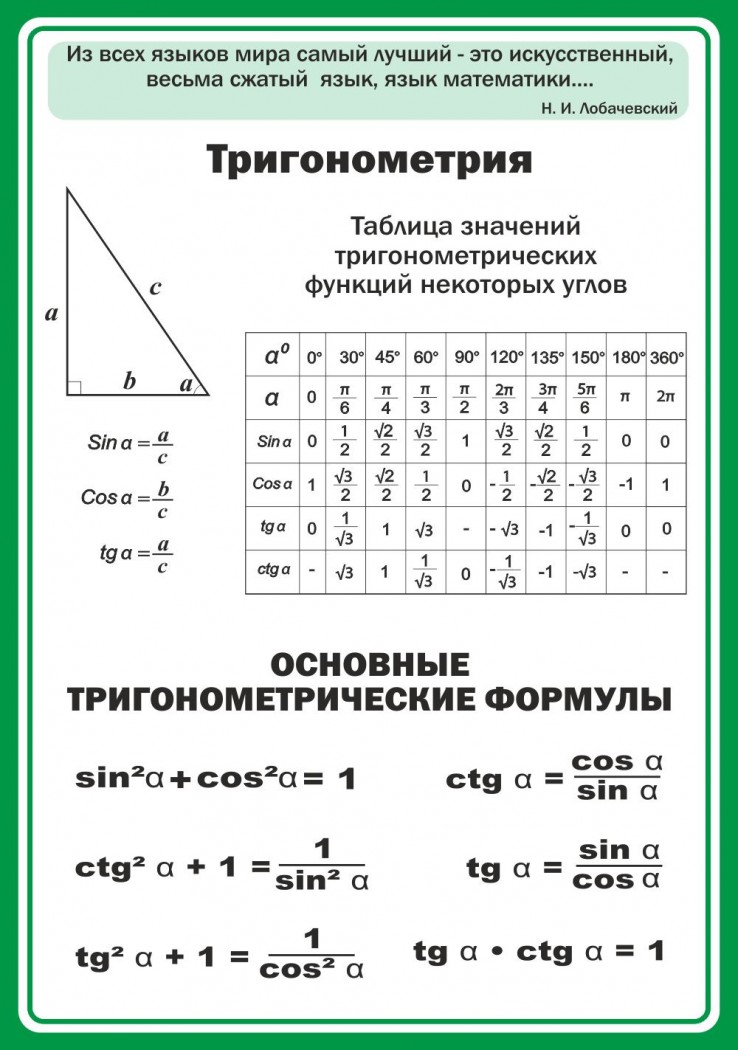 Стенд "Тригонометрия" Вариант 2