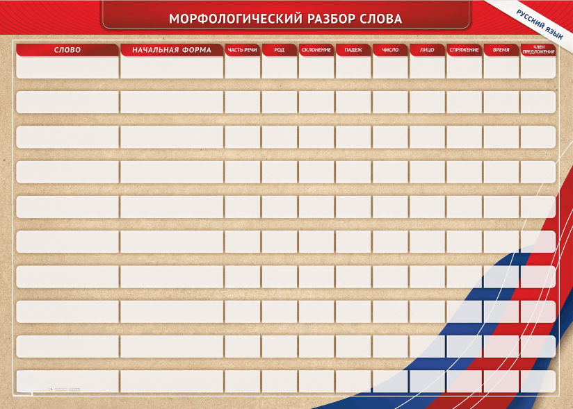 Фрагмент (демонстрационный) маркерный (двухсторонний) "Разбор по частям речи, разбор слова по составу и звуко-буквенный анализ слова"