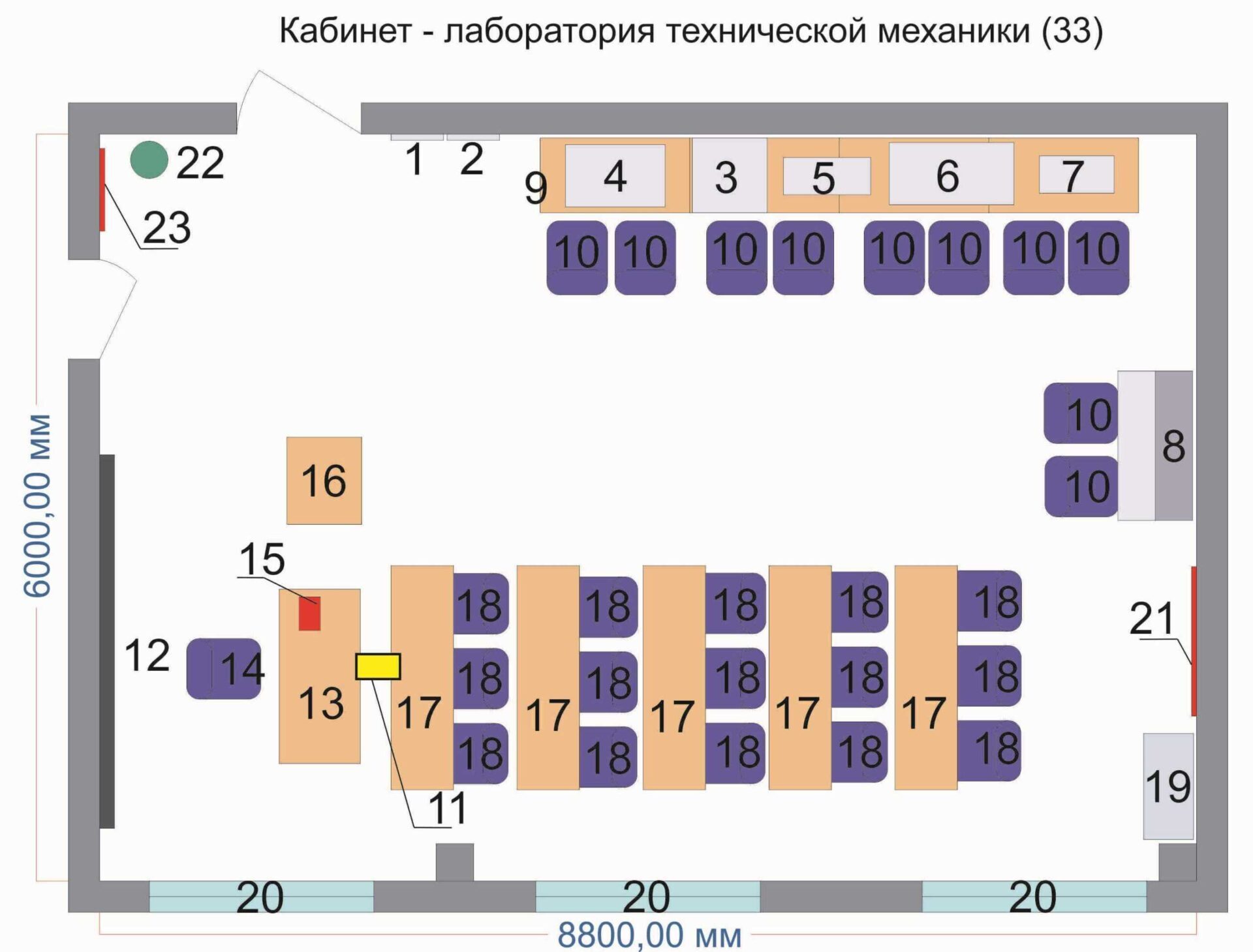 Учебная лаборатория технической механики обеспечивает 9 независимых рабочих мест, каждое для бригады из 2-3 человек.