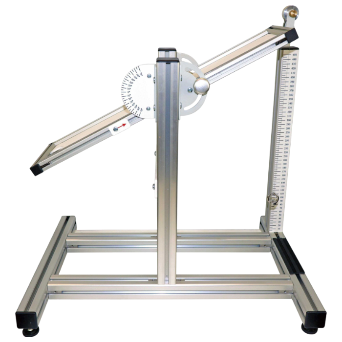 Учебный стенд представляет собой основание из профиля, с установленной на нем поворотной платформой. Поворотная платформа имеет возможность фиксации под различными углами. На поворотной платформе закреплена шкала, а на основании стрелка для определения угла наклона поворотной платформы.